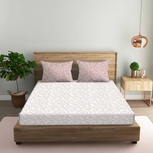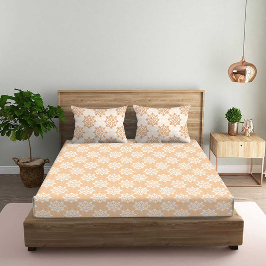Garden of Tree Beige Double Bedsheet with Two Pillow Cover | 210TC | King size 9x9 feet