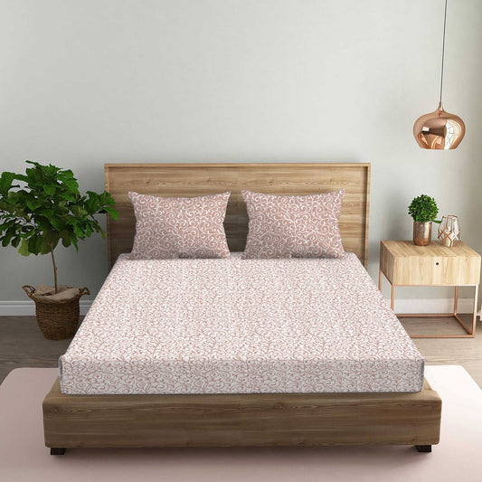 Classic Print Brown Double Bedsheet with Two Pillow Cover | 210TC | King size 9x9 feet