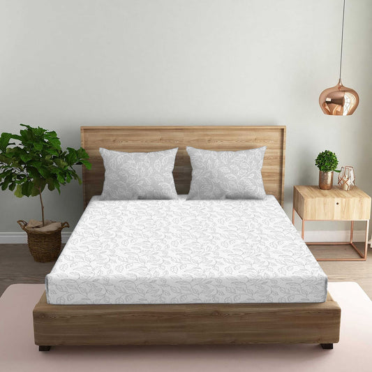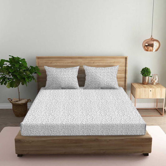 Floral Grey Double Bedsheet with Two Pillow Cover | 210TC | King size 9x9 feet