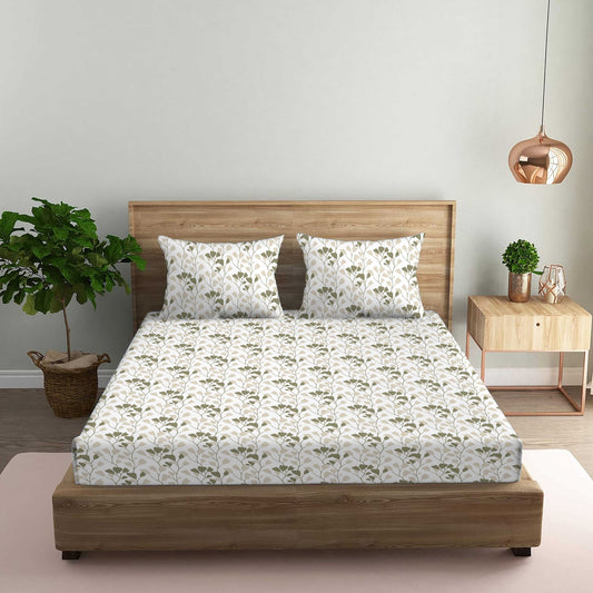 Garden of Tree Light Green Double Bedsheet with Two Pillow Cover | 210TC | King size 9x9 feet
