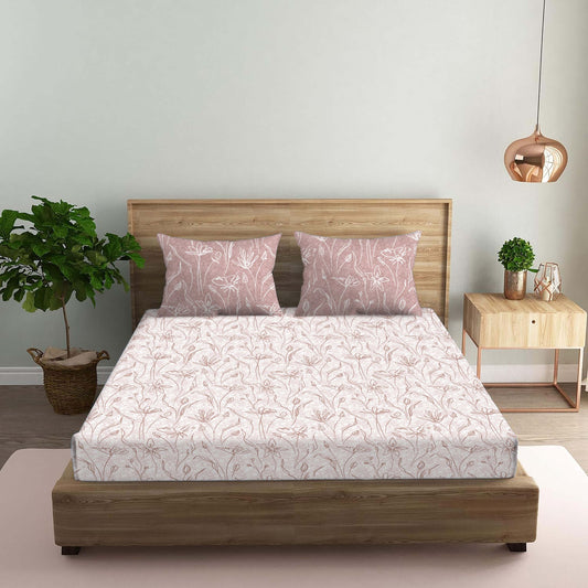 Floral Brown Double Bedsheet with Two Pillow Cover | 210TC | King size 9x9 feet